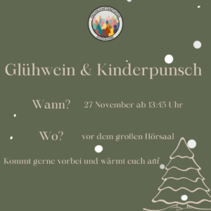Die FSI schenkt vor dem großen Hörsaal Glühwein und Kinderpunsch aus. Kommt doch gerne vorbei und wärmt euch auf.